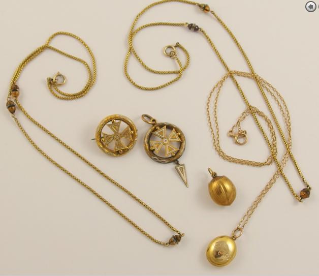 An interesting lot comprising of a yellow metal locket in the shape of a hazelnut