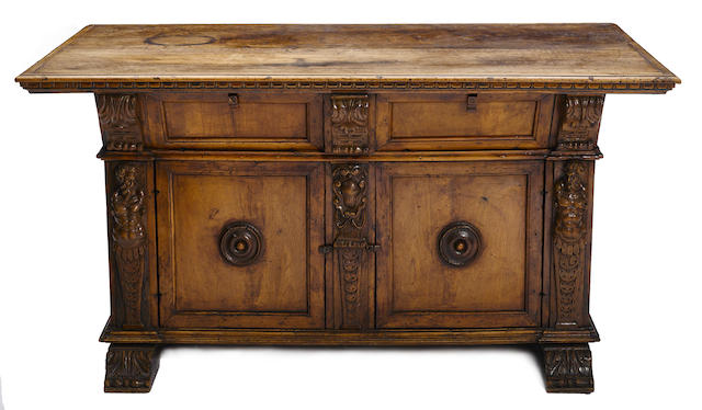 An Italian Baroque carved walnut center table, 17th/18th century
