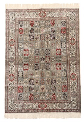 An Oriental silk rug, classic Qum garden design in squares