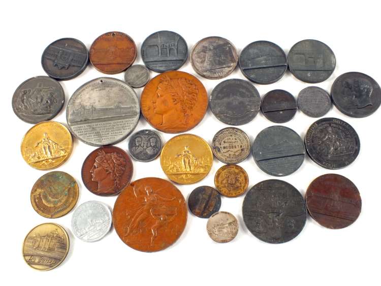 Approximately thirty medallions, French and other base metal