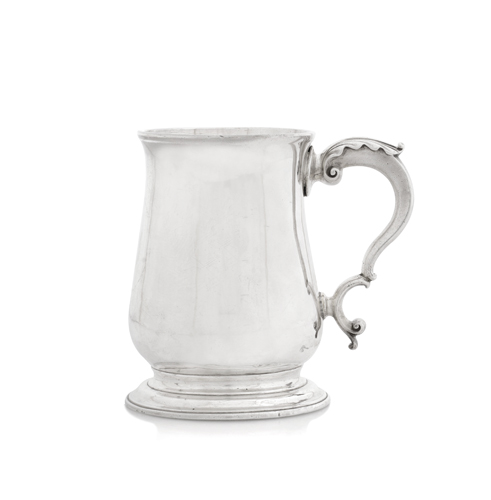 MUG GIORGIO III IN ARGENTO, LONDRA, 1776, ARGENTIERE W.GRUNDY, liscio con manico a voluta. g 240