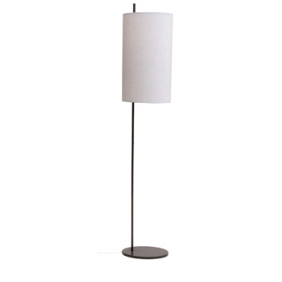 “AJ Royal”. Floor lamp with grey-lacquered metal frame, canvas shade