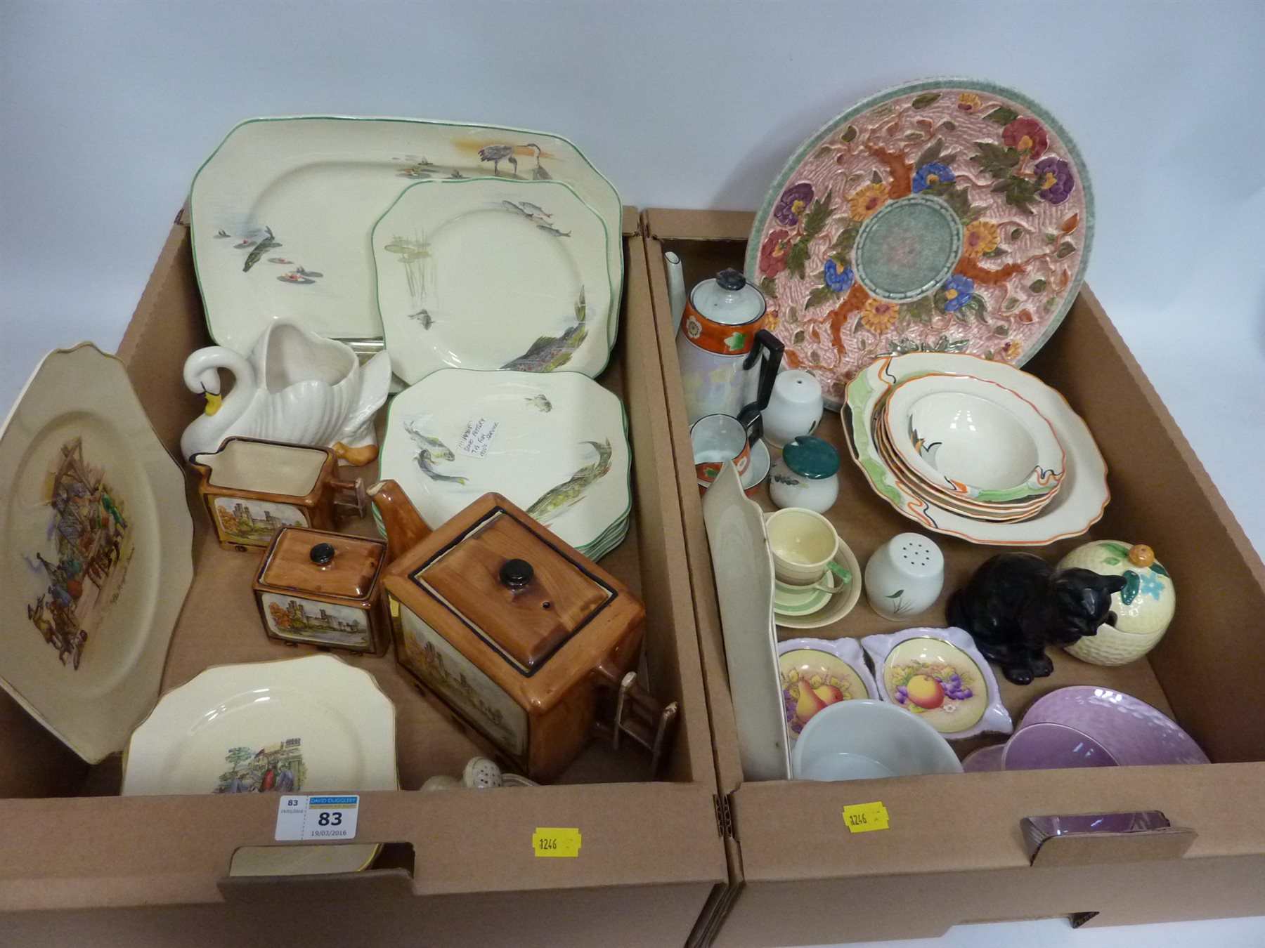 Sylvac swan and other 1930's decorative ceramics in two boxes