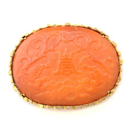 Asian Amber, 14k Yellow Gold Pendant Brooch
