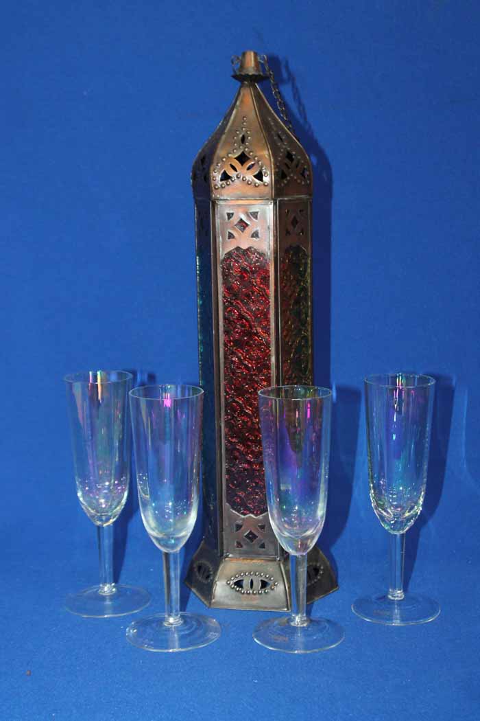 together with other modern glass lanterns and other glassware, including a Caithness-style paperweight, with circular mosaic mirror, etc