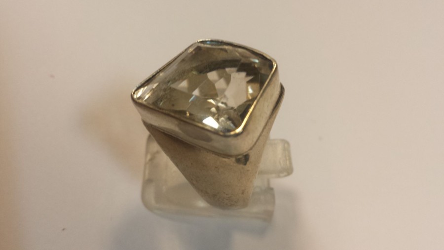Bague en argent ornée d'un quartz blanc de taille fantaisie.