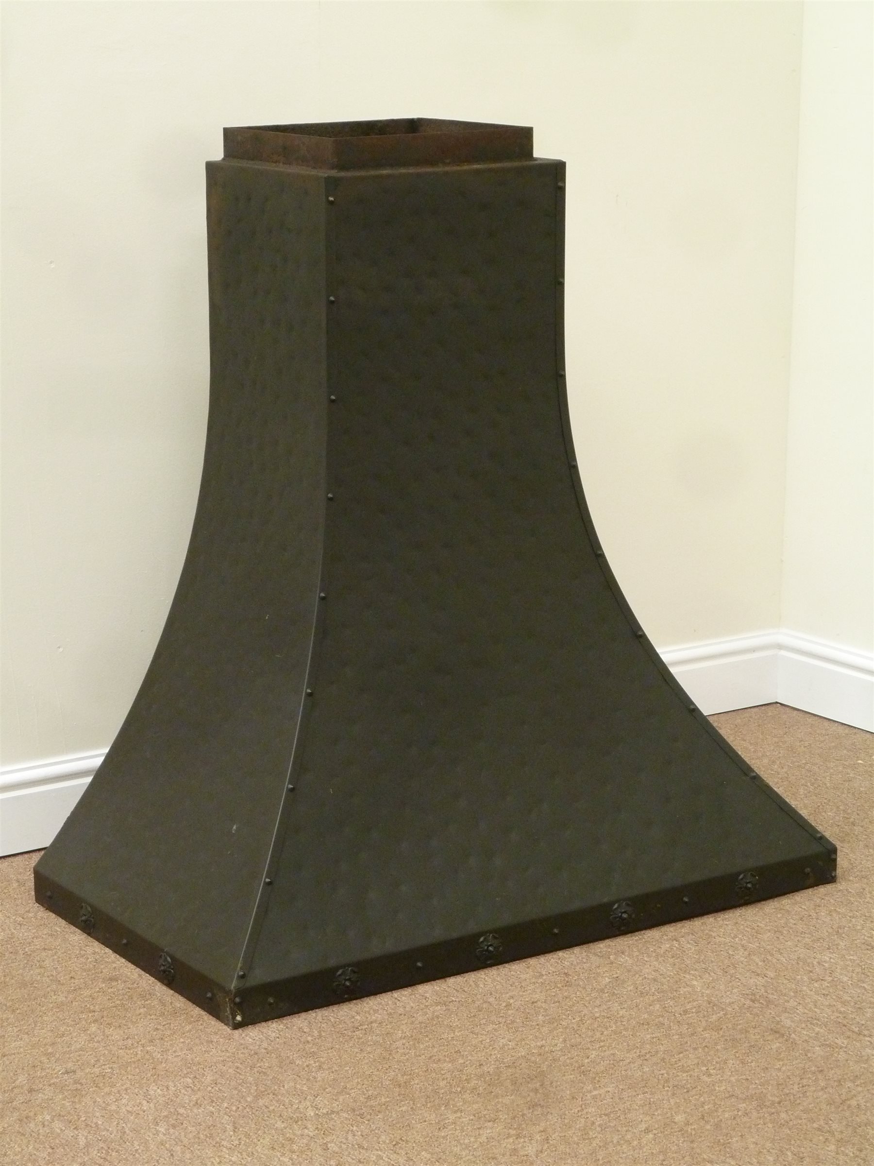Beaten sheet metal fire canopy, black finish