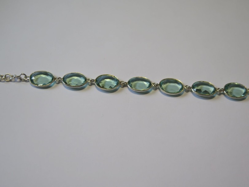 Bracelet articulé en argent, orné de sept fluorites facettées en serti clos, fermoir mousqueton réglable