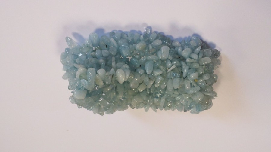 Bracelet manchette orné d'aigues marines de différentes tailles, ajustable et monté sur fil