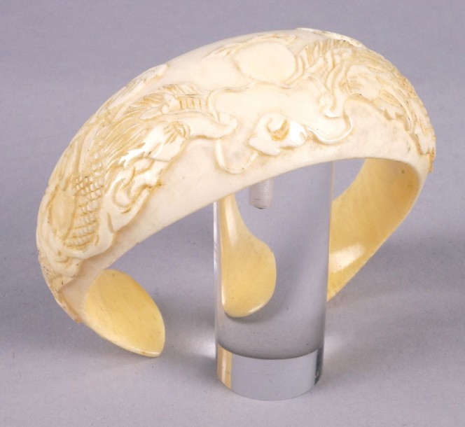 BRACELET OUVERT en ivoire sculpté de dragons.