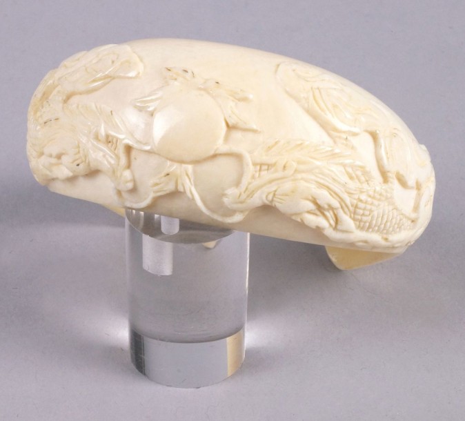BRACELET OUVERT en ivoire sculpté de dragons.