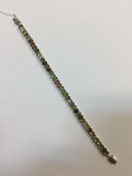 Bracelet souplement articulé en argent centré d'une ligne de tourmalines multicolores