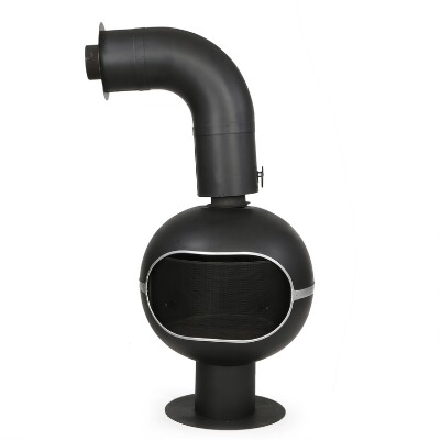 Ball shaped fireplace of iron. Outside black painted and with aluminium edges.