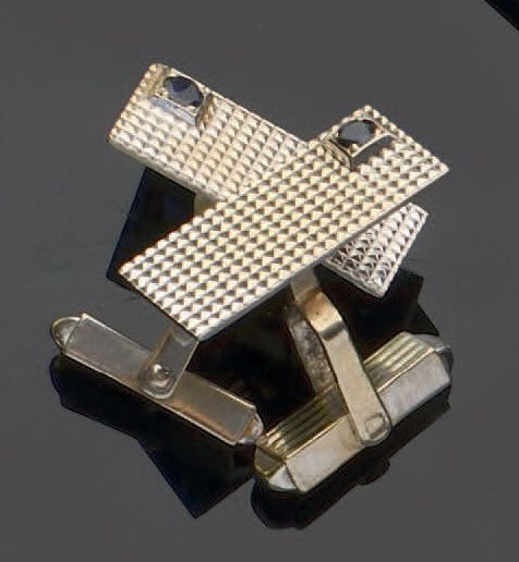 Buttons of white gold cuffs, 750 MM, each punctuated by a sapphire, weight: 8,61gr. gross