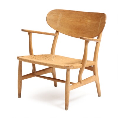 “CH 22”. Easy chair oak frame and moulded back, seat with papercord