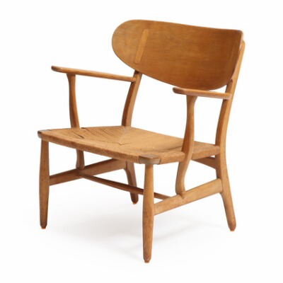 “CH 22”. Easy chair with oak frame and moulded back, seat with papercord. Manufactured and stamped by Carl Hansen & Son, Odense. 1950–1960's.