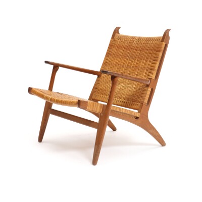 “CH-27”. A patinated oak armchair. Seat and back with woven cane