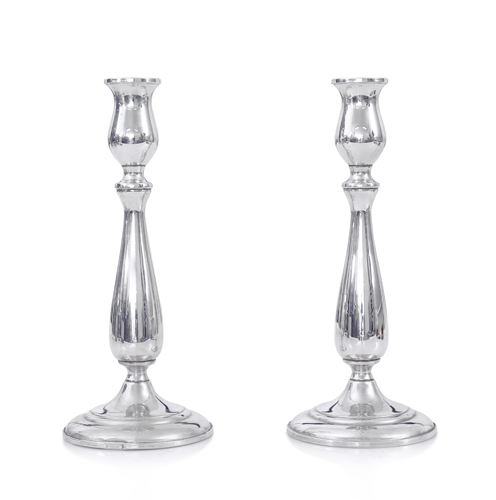 COPPIA DI CANDELIERI IN ARGENTO, CARTIER, XX SECOLO, fusto a balaustro con base circolare, zavorrati; lievi ammaccature