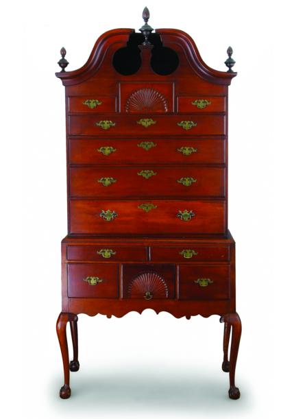 Possibly Pennsylvania or Maryland. Broken pediment bonnet top over a center shell carved bonnet drawer flanked by two short drawers over four graduated drawers above two short drawers over a shell carved center drawer flanked by two short drawers. th