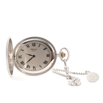 Mechanical movement with manual winding, ref. 503018–1001. An 18k white gold watch chain included.