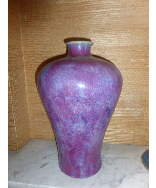 Vase Meiping en porcelaine rouge bleuté, Chine (percée) H: 37 cm.