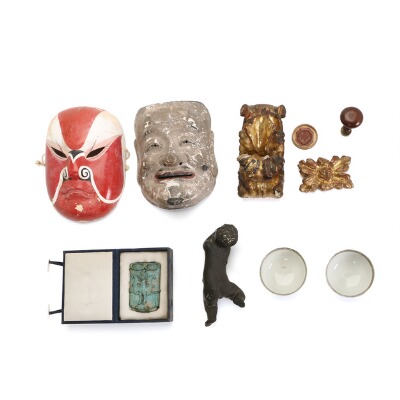pair of Chinese export cups, gilded ornaments, etc. (10
