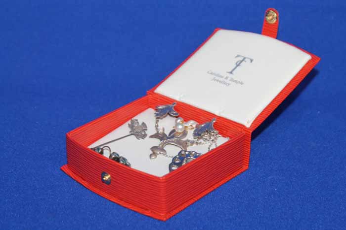 including gold pearl earrings, a silver stick pin, a designer silver suite, etc