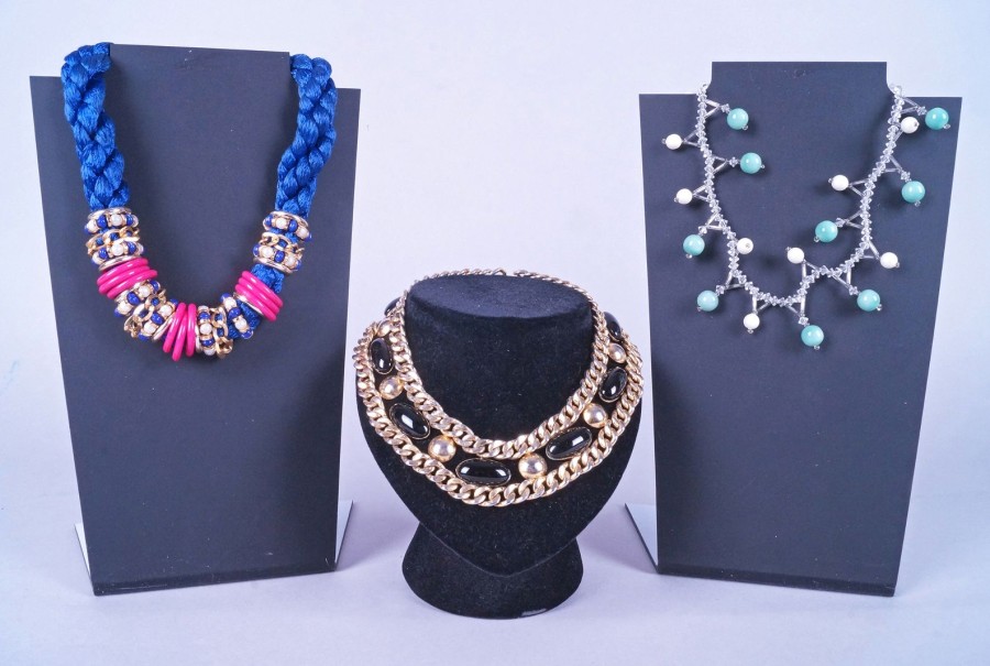 COLLIER DE CHIEN de marque Édouard RAMBAUD en métal doré et cabochons façon onyx, RAS-DE-COU en passementerie métal doré et perles synthétiques et COLLIER à pendeloques.