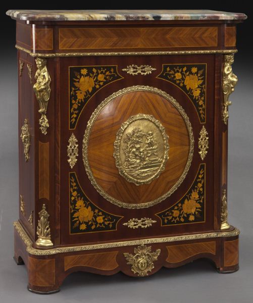 Continental inlaid marble top side cabinet, Early 20th century