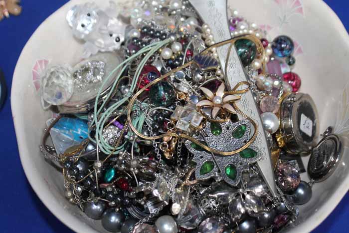 COSTUME JEWELLERY IN A CERAMIC BOWL