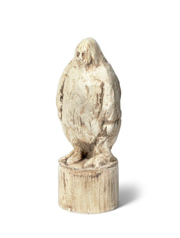 Doctor Who/ Patrick Troughton - The Web of Fear: an original prop yeti homing device, BBC, 1968, the hollow figure of stained mixed media resin, mounted on a base, accompanied by a black and white still [printed later] from the film showing the vendo