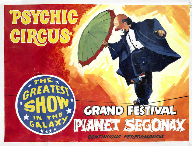 BBC, 1988, mixed media of acrylic paint and pen on paper, the posters can be seen in the ticket booking area of the Psychic Circus