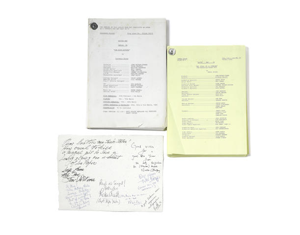 BBC, 1986 / 1983, The Trial of a Timelord camera script including a recording order for episodes 1-4 taking place 10th-12th May 1986, cast and main crew lists, contact list, the script 126pp. of mimeographed typescript, unbound with metal fastening i