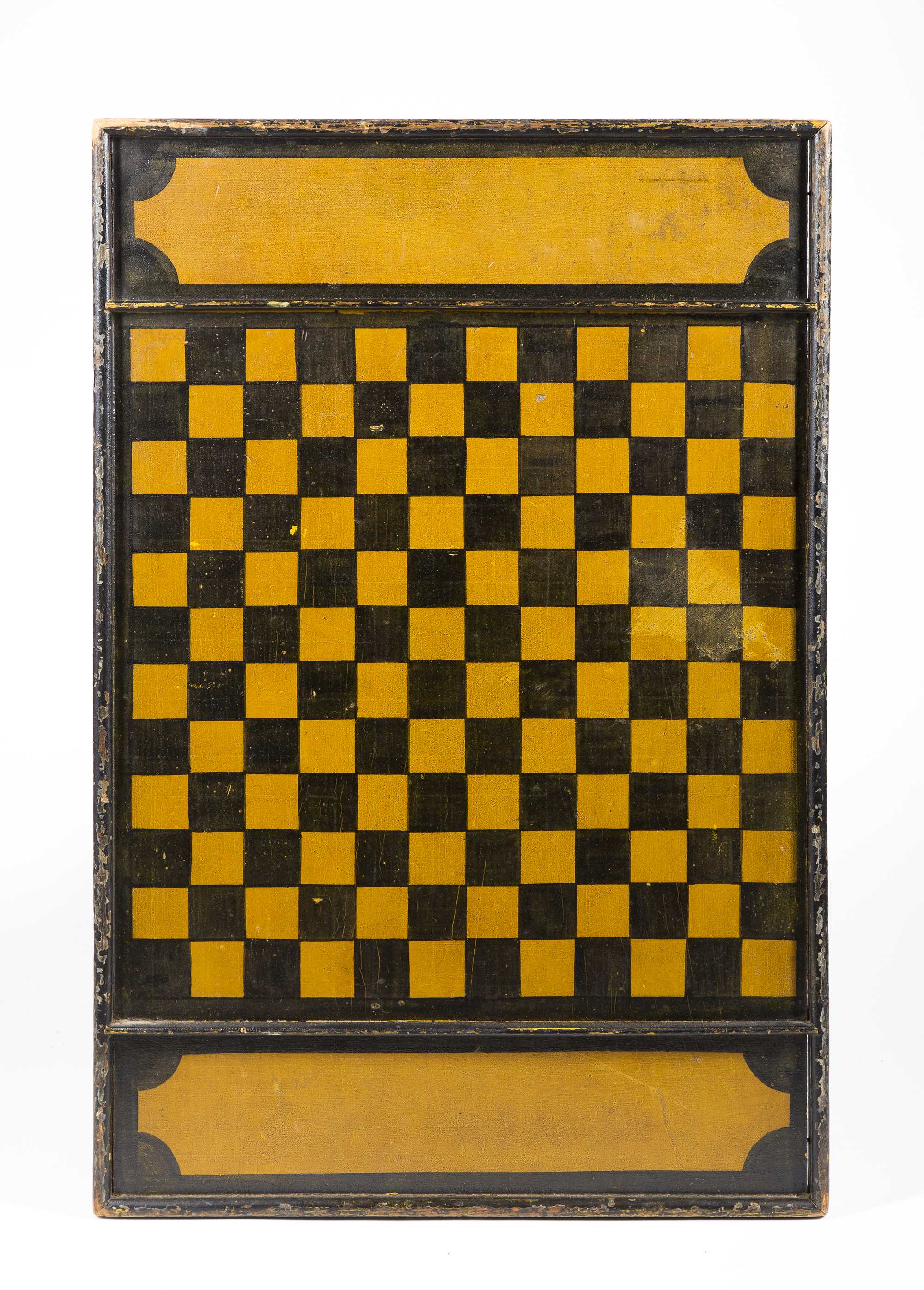 mustard yellow paint with black border and alternating squares with a red pinstripe and border