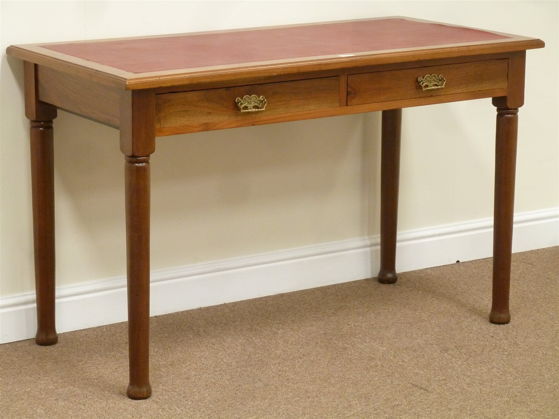 Edwardian walnut two drawer writing desk fitted with inset leather writing surface