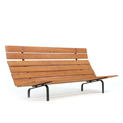 Black lacquered steel frame wit solid oak slats in seat and back.