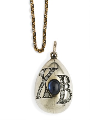 A Russian silver-gilt pendent Easter egg with a cabochoncut sapphire and XB in diamonds