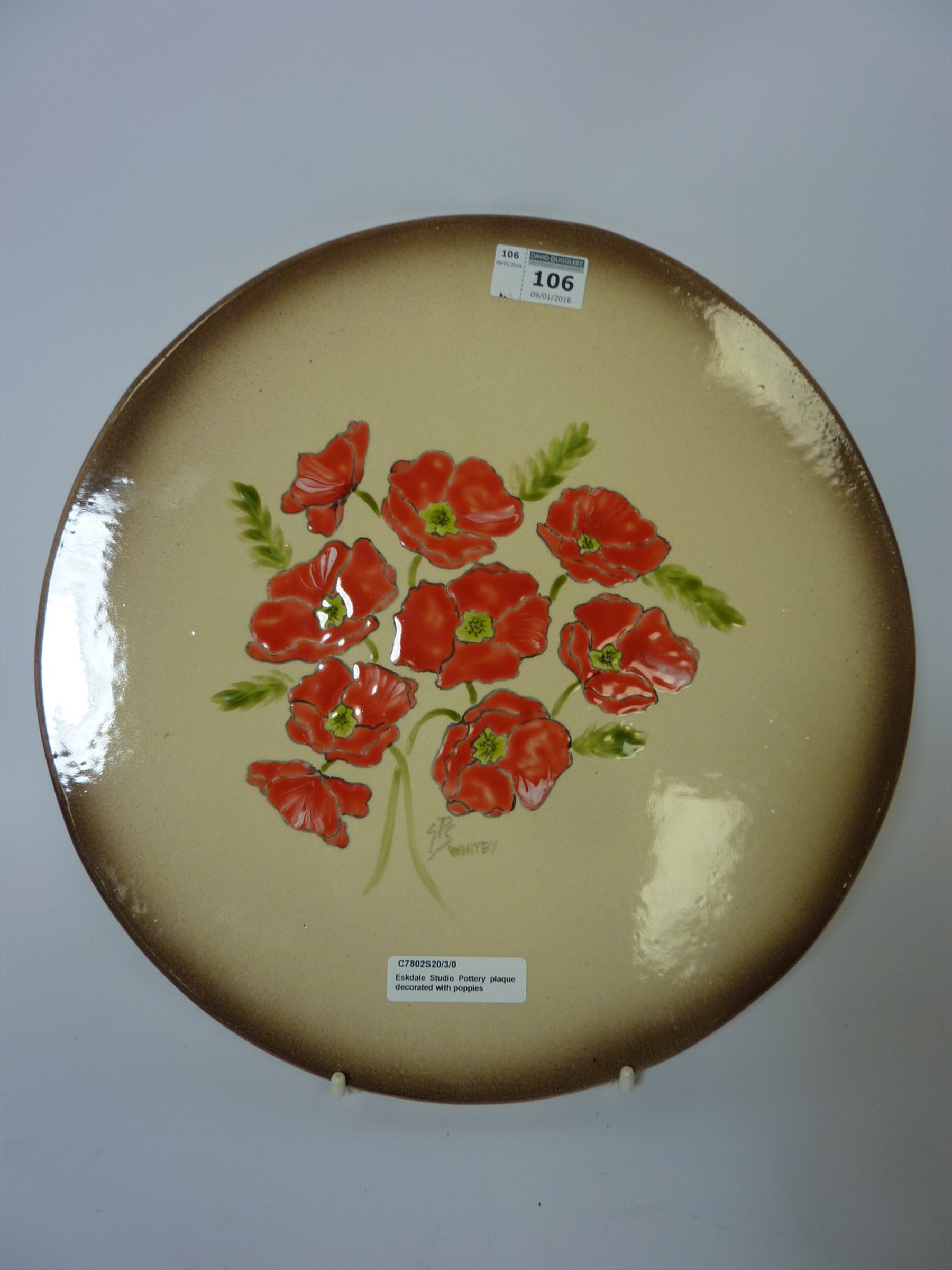 Eskdale Studio Pottery plaque decorated with poppies D36.5cm
