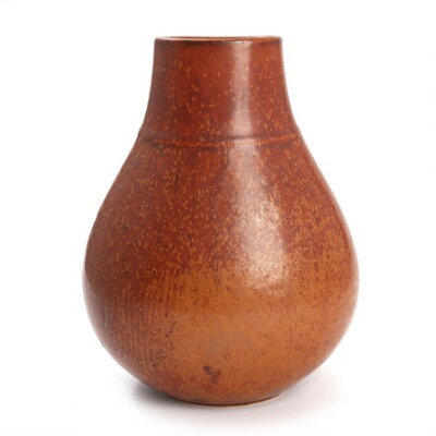 Stoneware vase modelled with narrow mouth, decorated with reddish-brown glaze
