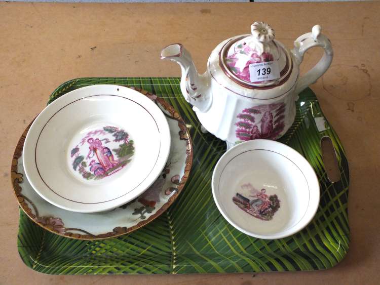 Faith, Hope and Charity teawares and a 19th Century Chinese bowl and other china (some damage), two trays