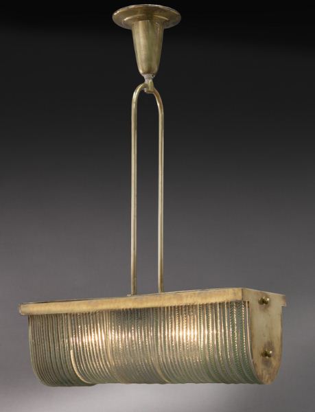 with brass support over reeded U-shaped glass panels. 28.5"H x 19"W x 7"D, Circa - Mid 20th C.