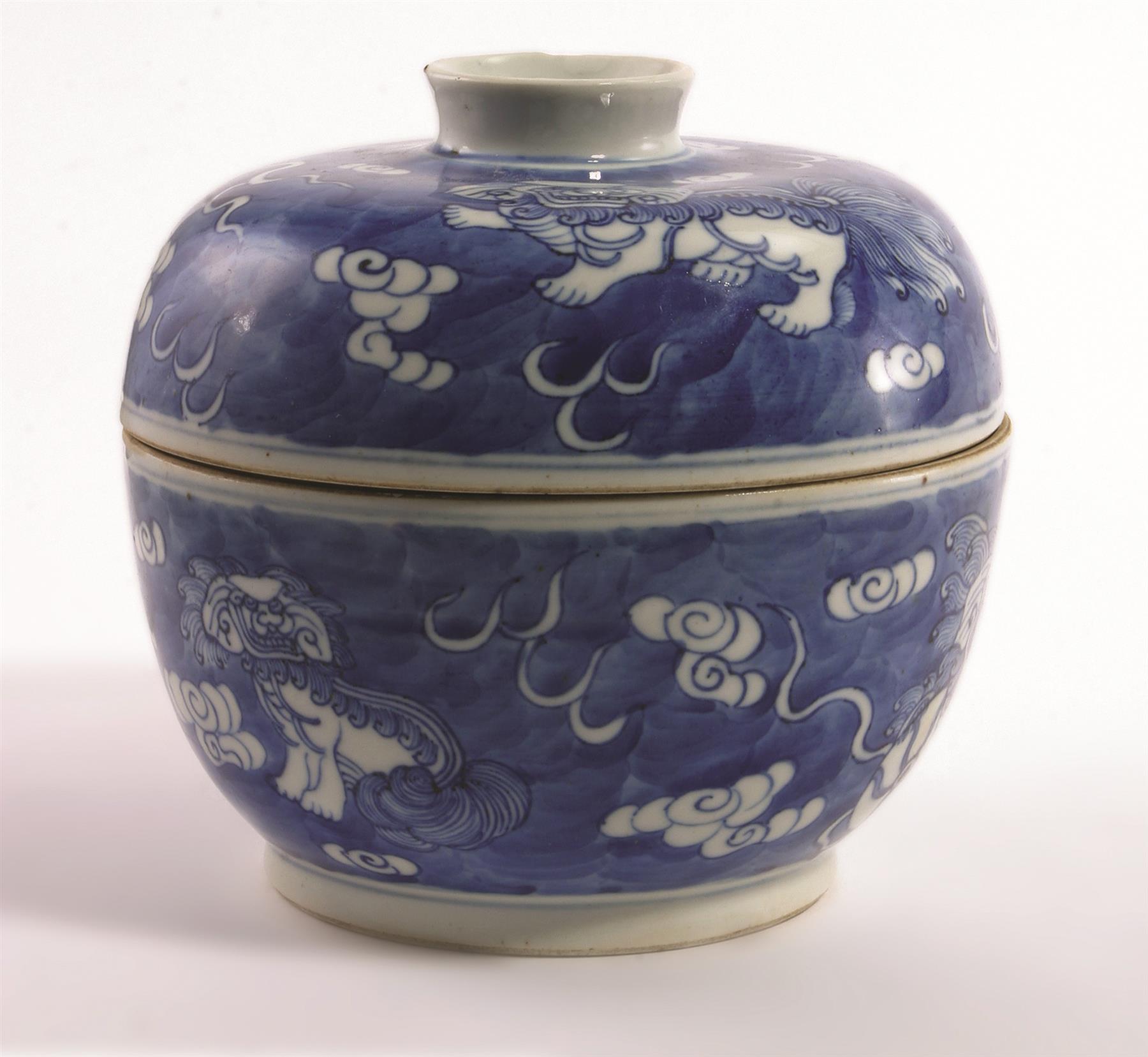 Bottle form vase, lidded vessel, and plate all with underglaze cobalt direction along with a Famille Noire reproduction Japanese plate. Impressed marks to underside