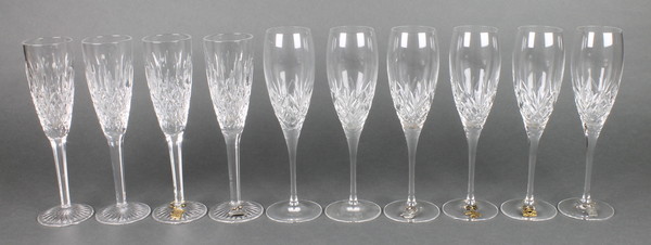 Four Stuart Crystal champagne flutes and 6 Royal Doulton ditto