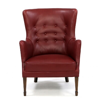 Seat, sides and back fitted with buttons upholstered with wine red aniline leather.