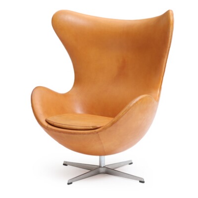 Easy chair with tilt function, aluminum star foot, upholstered in natural leather