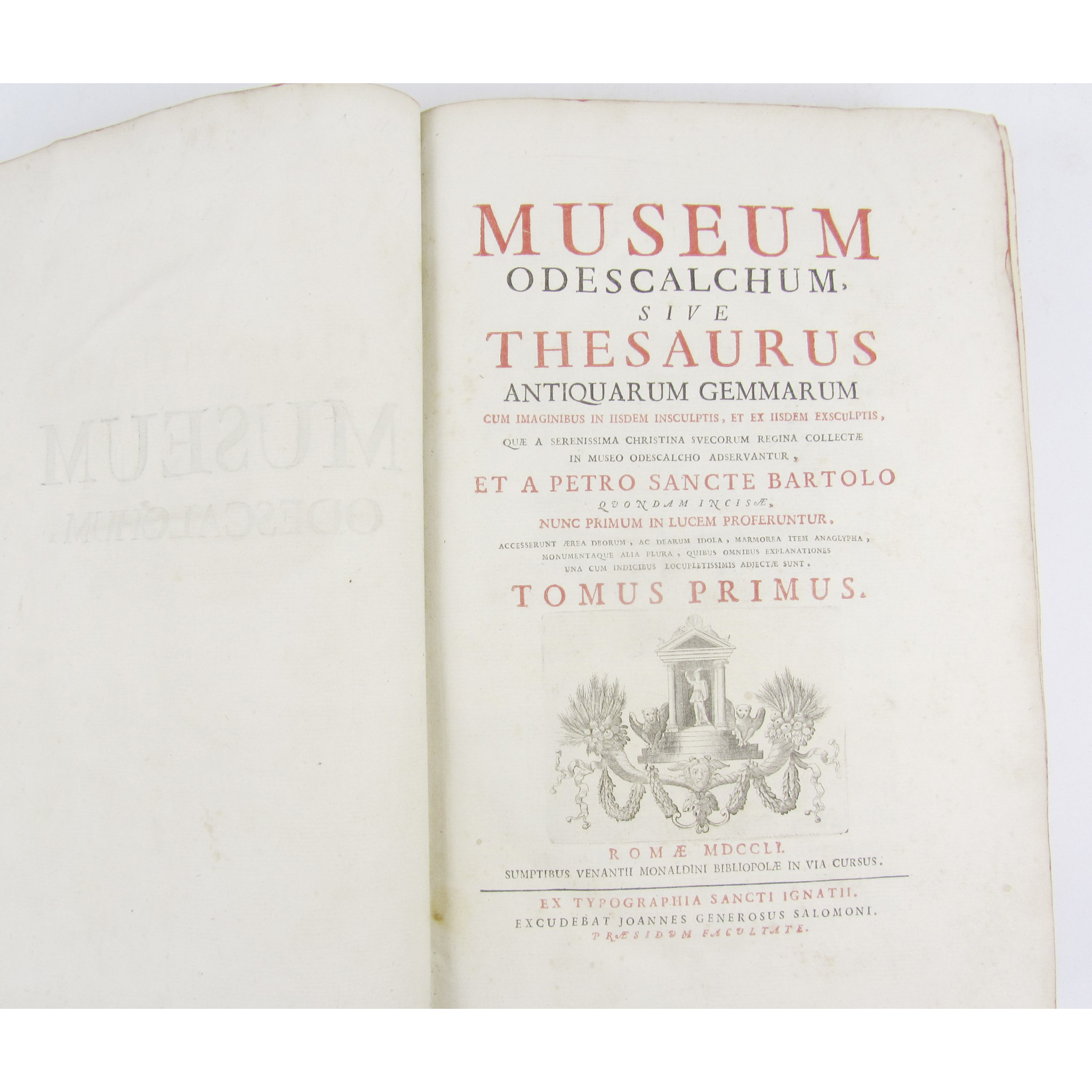 Museum odescalchum, sive thesaurus antiquarum gemmarum... Christina Suecorum Regina collectae. Rome: J.G. Salomon, 1751. Folio, 2 volumes in one, folio, title printed in red and black, engraved plates, contemporary vellum