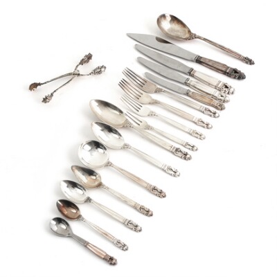 Silver and sterling silver cutlery. Weight excl. parts with steel app. 1192 gr. (36)