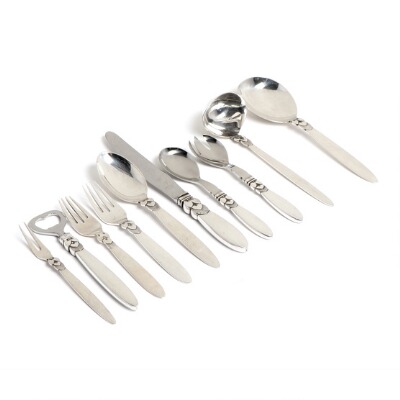 “Cactus”. Silver and sterling silver cutlery. Manufactured by Georg Jensen, after 1910. Weight excl. parts with steel app. 1159 gr. (34)