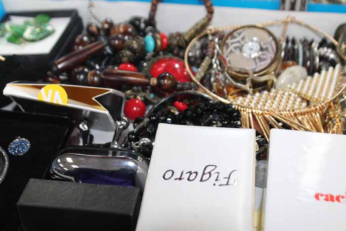 including Cacharel and Figaro watches, golf-themed cufflinks, Karen Millan cufflinks, Poodle ring holder, etc