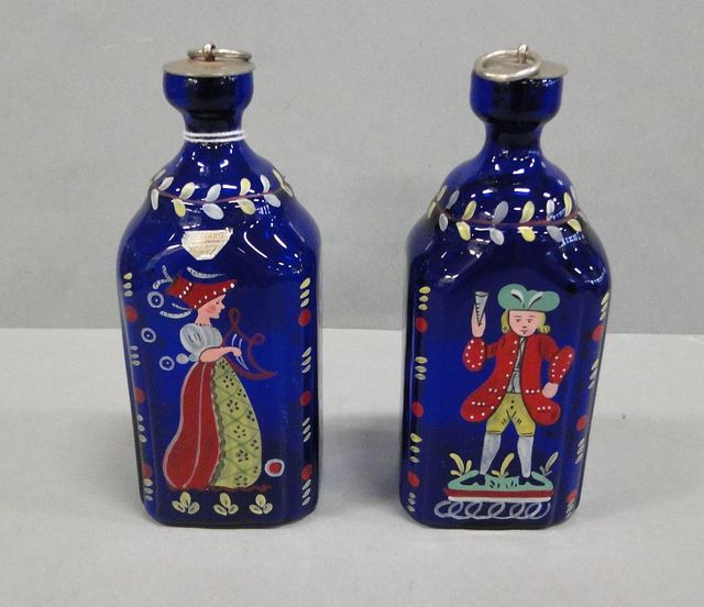 Gullaskruf 2st flaskor med allmogedekor, Växjö, H15cm